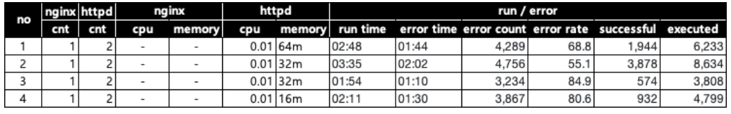 - error rate : executed 중 에러난 테스트의 비율